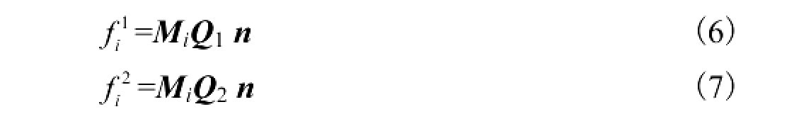 式中MiQi*n和MiQ2*n分別表示主從動輪的各單項偏差在嚙合線方向綜合作用的效果。齒輪整體誤差反映了齒輪各單項偏聽偏差為主從動輪在接觸點Mi 的齒輪整體誤差,則有: