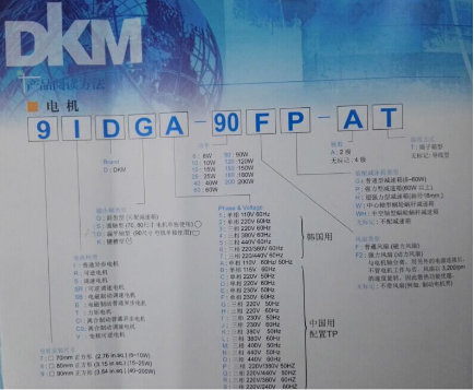最近有許多客戶一來就給了一個型號或者銘牌,比如:9IDG2-90FP.在這里我們統一解釋一下,以前DKM的型號確實是如此,但是韓國所用頻率為60HZ,而中國為50HZ,