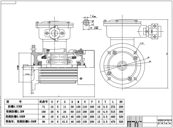 本系列電動機防爆性能符合GB3836.1-2000[爆炸性氣體環境用電氣設備第1部分:通用要求]和GB3836.2-2000[爆炸性氣體環境用電氣設備第2部分:隔爆型 “d”]的規定,也符合IEC79-1,BS4683和EN50018的規定,制成隔爆型。防爆標志為EXEI、EXDIIAT4、EXDIIBT4,適用于有爆炸性氣體混合物所在的場所。