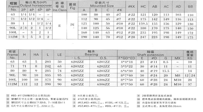 特點:1采用E級絕緣及高級導電材料,溫升低,壽命長,性能優越 2外型輕巧,堅固耐用3優越的設計,噪音低,運轉安靜 4 啟動轉矩大,慣性小,運轉順暢,省電效果較佳,馬達強勁有力。5特性合乎國家CNS及各項國際認證等標準。6標準IEC公制尺寸,具有互換性,適合各界需要