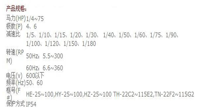 東元臥式電磁調速馬達轉速控制范圍: ED馬達僅需微小的控制電力,即可做廣范圍的無段控速,以閘流子方式的控速范圍在連續運轉時為10:1。轉速變動率: ED馬達轉速變動率以下式表示轉速變動率(%)=[(10%負載時轉速—100%負載時轉速)/ (100%負載時之最高轉速)] ×100%ED馬達負載轉矩從100%全負載到10%之范圍內變化,其轉速變動率如使用ED控制盤,可在1%以下。若負載轉矩在全負載轉矩5%以下的輕負載時,其控制性欠佳,很難得到所需要的轉速。ED馬達的轉速變動率可旋轉控制盤內基板上之增益調整螺絲,做廣范圍的調整,可以得到在各種用途上所需控制特性。定轉矩特性: ED馬達定轉矩電動機,不論轉速的變化如何而它均能依負載的需要,將驅動電動機的轉矩原原本本傳送到輸出軸,所以其輸出軸的輸出功率是與轉速成比例增加,如轉速減半,其輸出亦減半。輸出軸之輸出為驅動電動機之輸出減去ED耦合機的損失,此值在最高額定轉速時,約為驅動電動機輸出的80%。輸出軸之轉速: ED耦合機由于感應子與雙重轉筒之間有相對的轉速差,才得將驅動電動機的轉矩,傳送到雙重轉筒上,故ED馬達在負載聯結時,必有若干程度的轉差