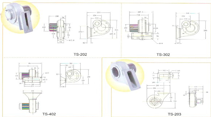 TS201-405鼓風機特性說明: 一般用于塑膠材料片材的擠出、吹塑等相關機械設備上的抽排風,采用鋁合金重力壓鑄外殼,配合離心葉輪及優化參數設計,使各風壓及風流量達到所配置的性能最優,以利使用壽命能完全配合所設計的8---10年! TS系列說明:名稱 出口徑 出力 頻率 電壓 滿載電流 最大靜壓 最大風量 噪音 重量