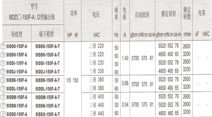 2極電機90W-150W