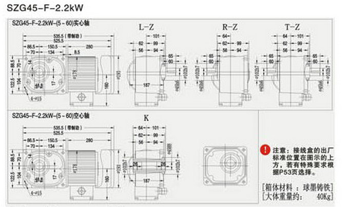 以下是SZG-F直交軸中型減速機(jī)的具體參數(shù):