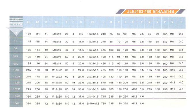 電機安裝方式為:B5標準法蘭; B14小法蘭; B3臥式電機寬電壓:(220|380V;240|415V;260|440V;280|480V)寬頻率:50|60HZ其特點是:低噪音、小振動其絕緣等級為F級絕緣,可耐155℃高溫 ;其防護等級為IP55