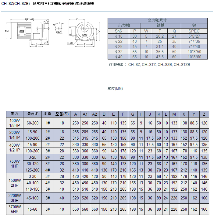 下圖為臺灣城邦臥式(標準/縮框)附三相剎車減速馬達詳細參數及選型參數: